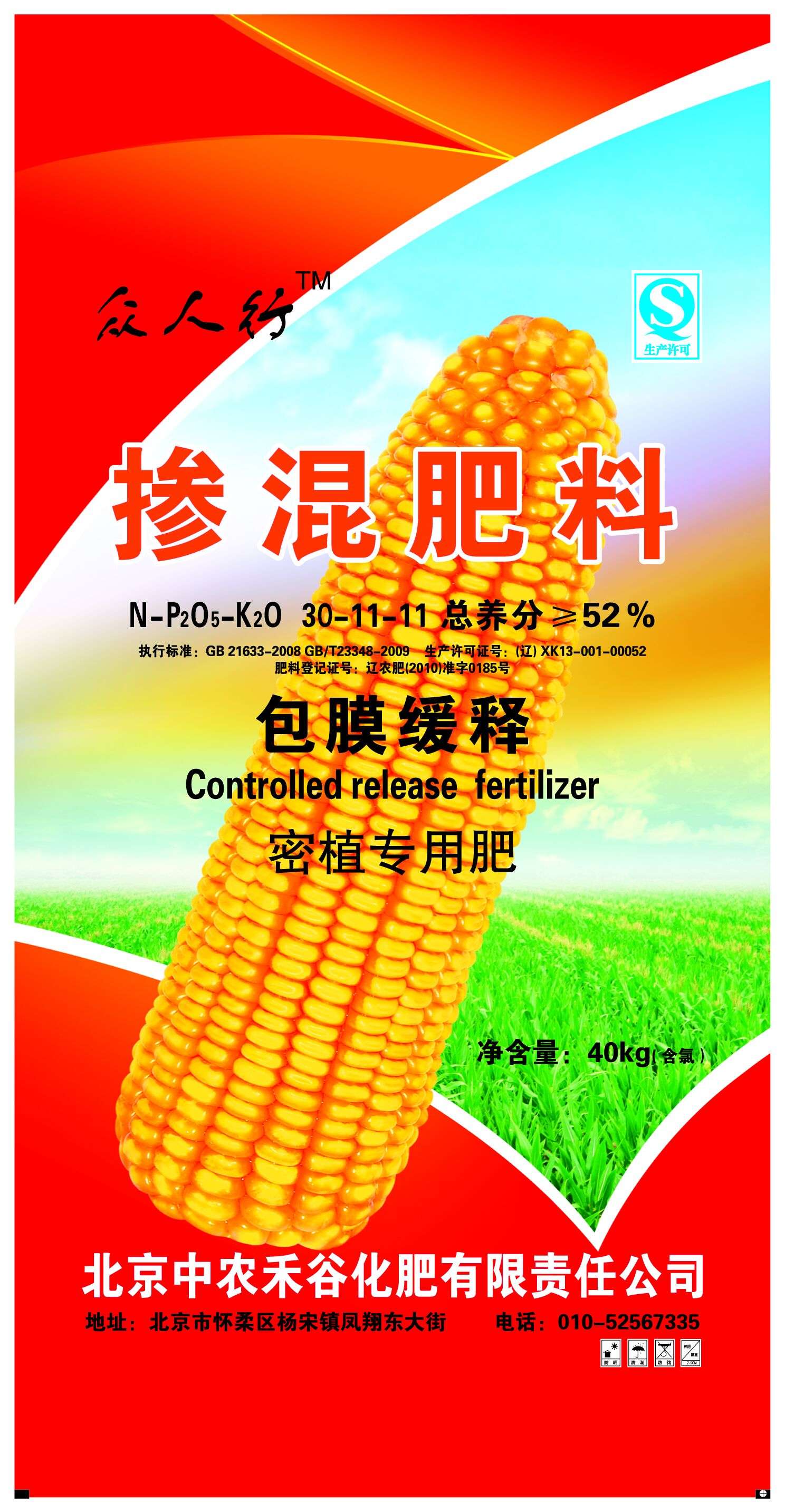 众人行牌 掺混肥料 包膜缓释 密植专用肥 总养分≧52% 净重40kg