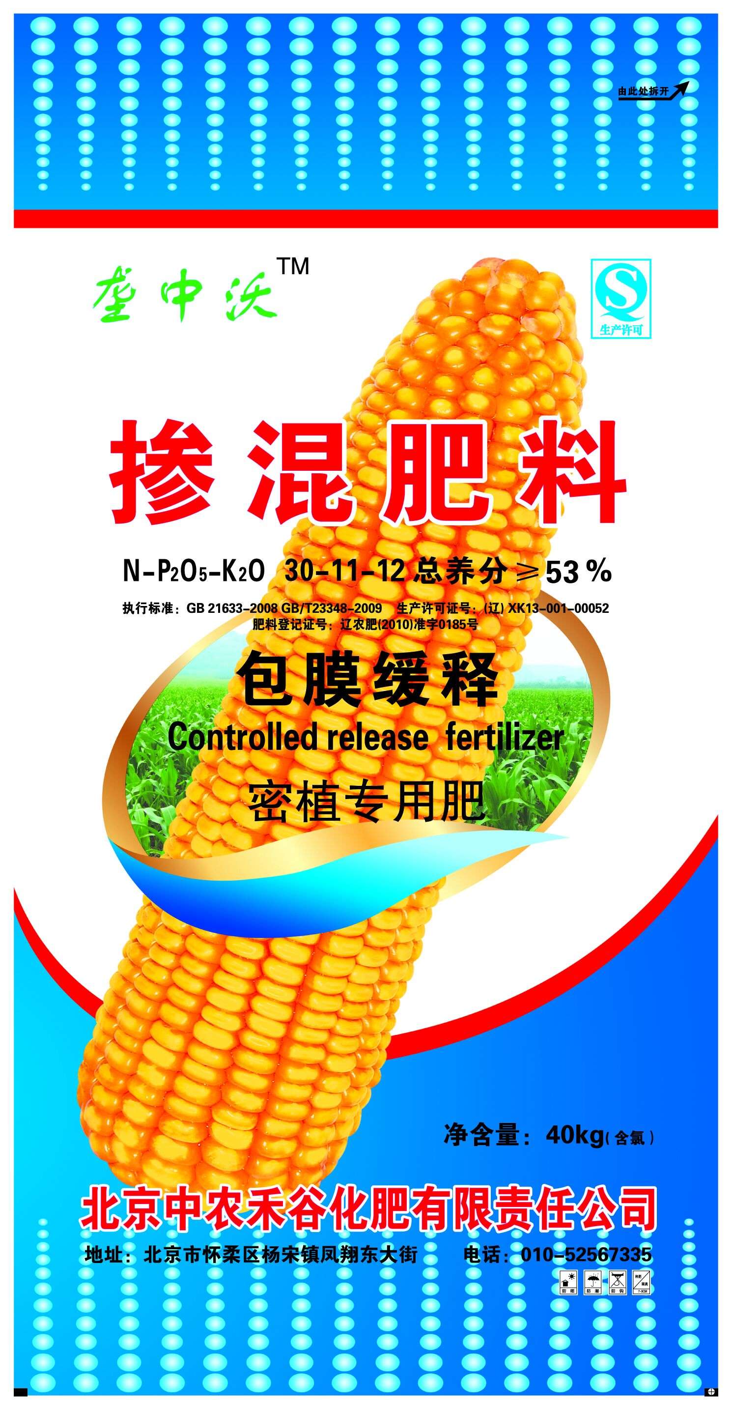 垄中沃牌 掺混肥料 包膜缓释 密植专用肥 总养分≧53% 净重40kg
