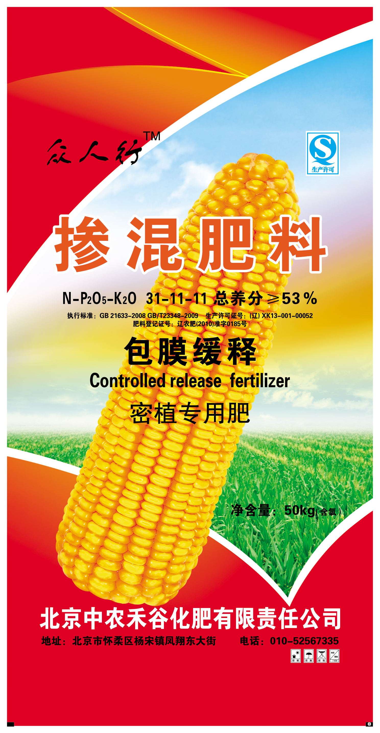 众人行牌 掺混肥料 包膜缓释 密植专用肥 总养分≧53% 净重50kg